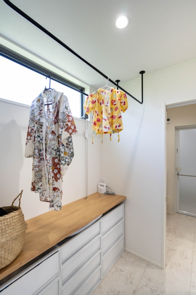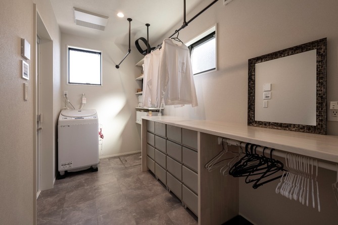 ランドリールームにぜひ取り入れたいのが、造作カウンター。アイロンがけ、洗濯物を畳む、仮置きする――など洗濯にまつわる作業は色々!だからこそ作業スペースがあるかどうかで、使い勝手は大きく変わります。