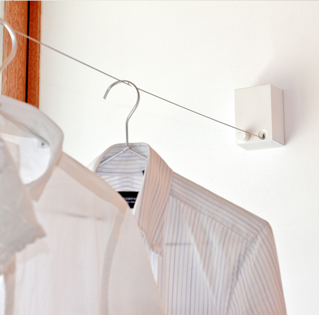 森田アルミ工業のワイヤー式室内干しは、使うときだけワイヤーを引き出し、使わないときは収納できるため、見た目がすっきりします。