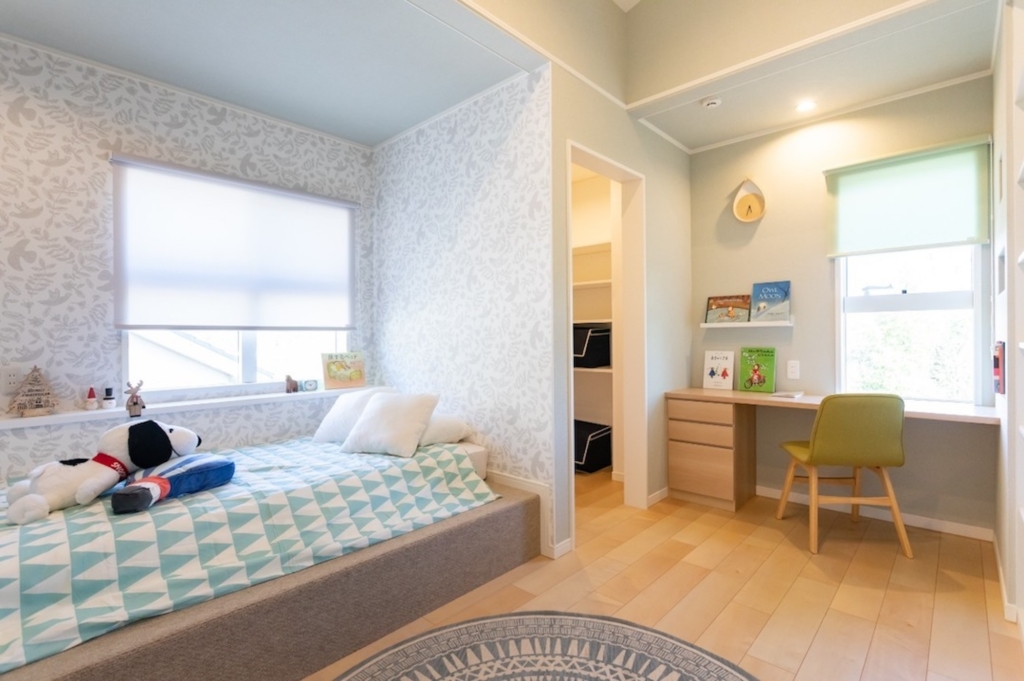 ただし!子ども部屋は高校生くらいになっても使う場所。クロスはあえてシンプルにして、子どもたちが自由に飾れるようにするのもおすすめです。壁紙は将来張り替えられますので、「いつか張り替える」という前提なら可愛い壁紙を選んでも良いですね(^^)/