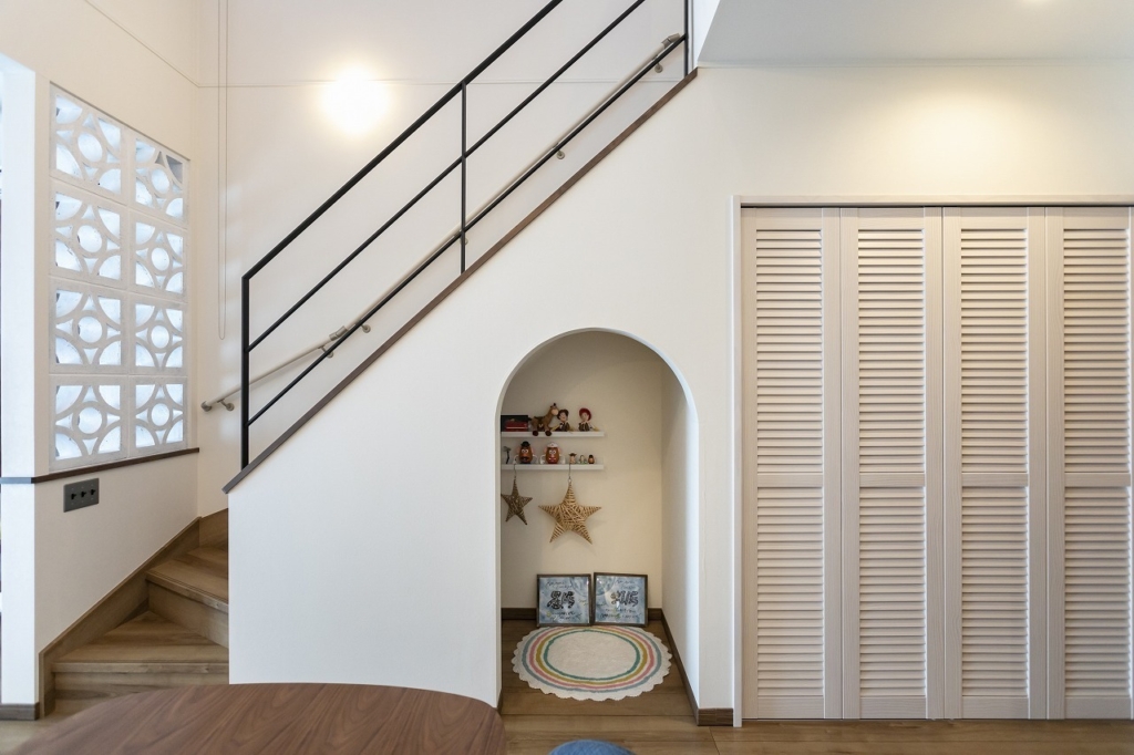 階段下の空間は、収納スペースとして使うことが多いのですが、秘密基地のように使うのもとてもおすすめの場所!